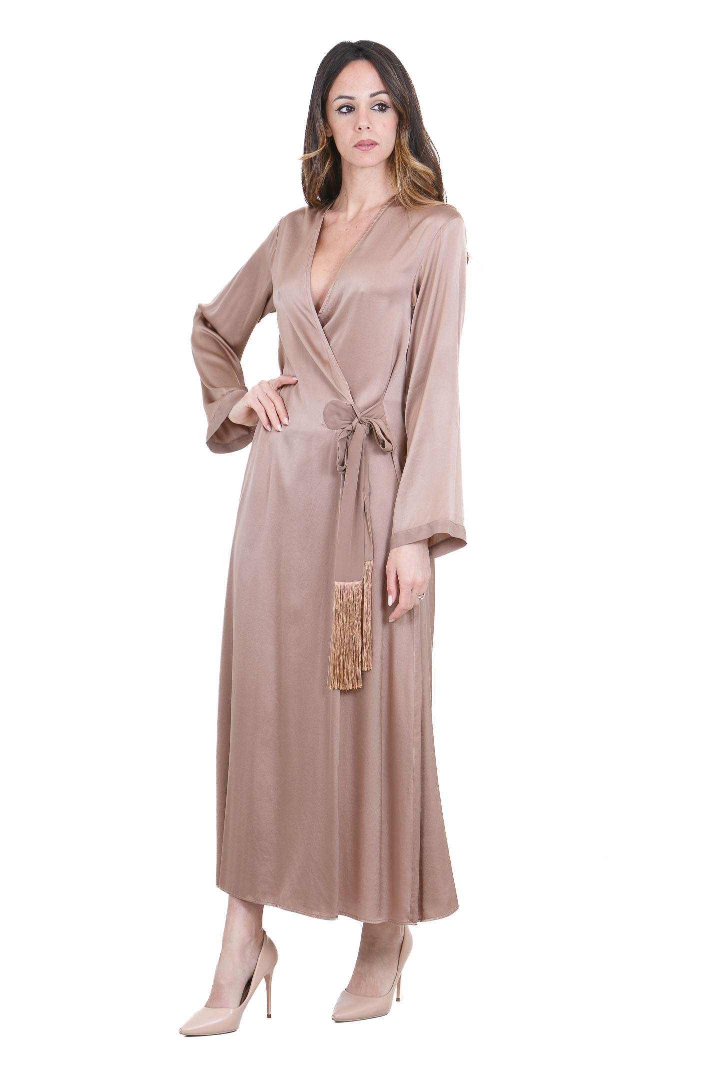 Abito lungo incrociato seta a mano