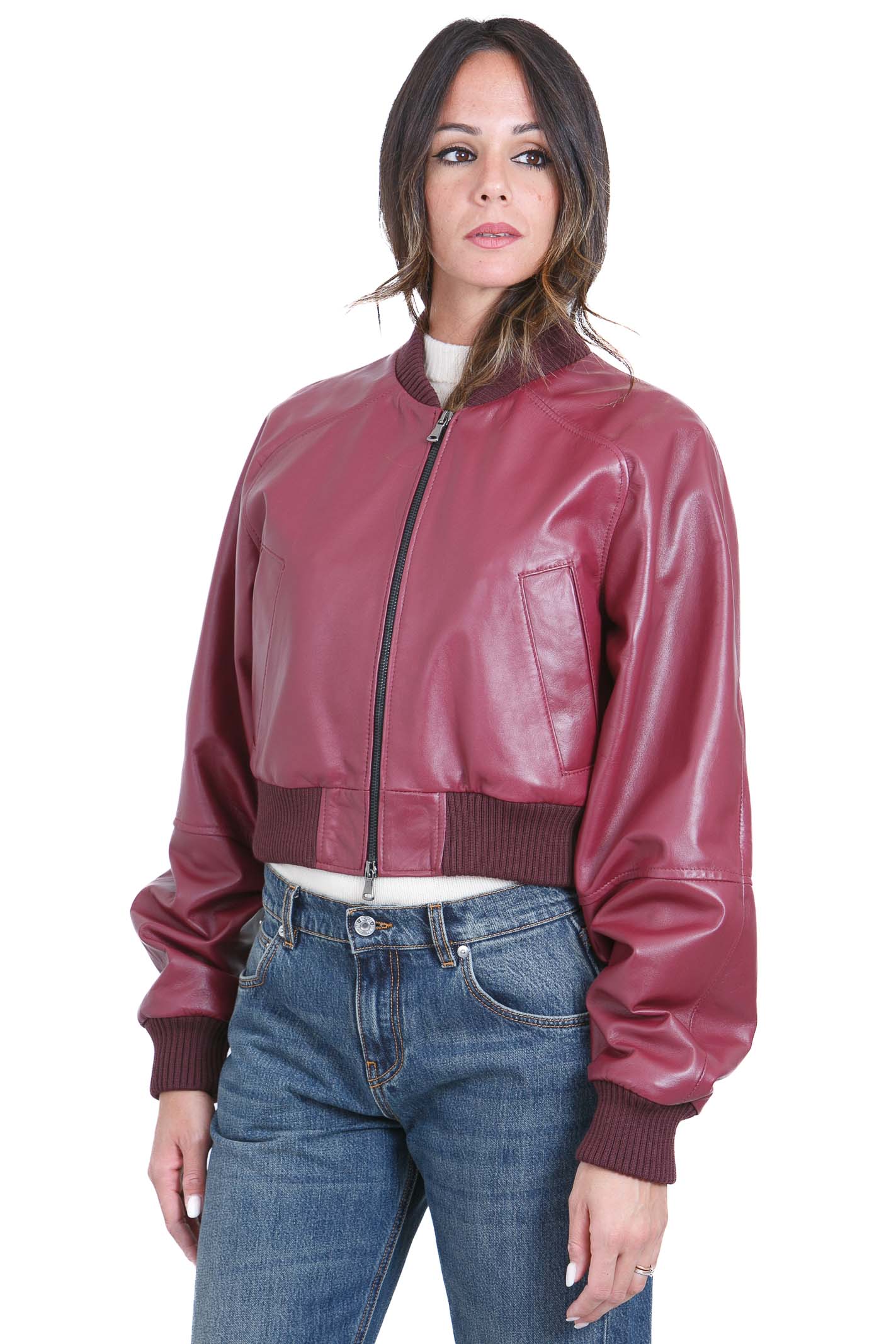 Giubbotto cropped in pelle