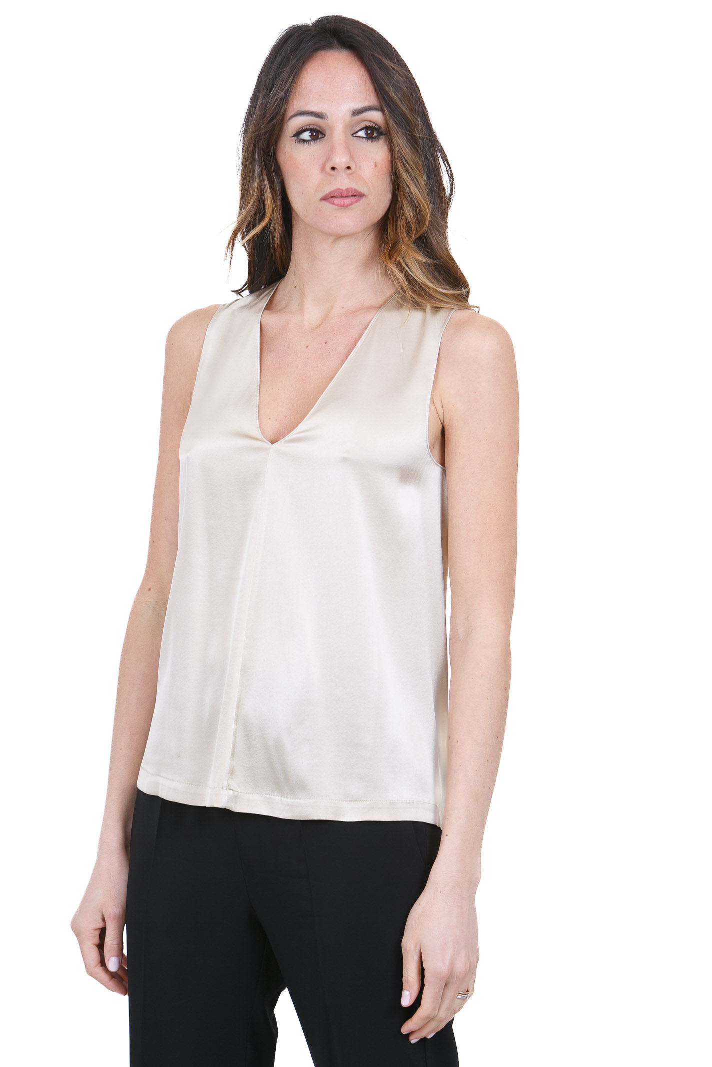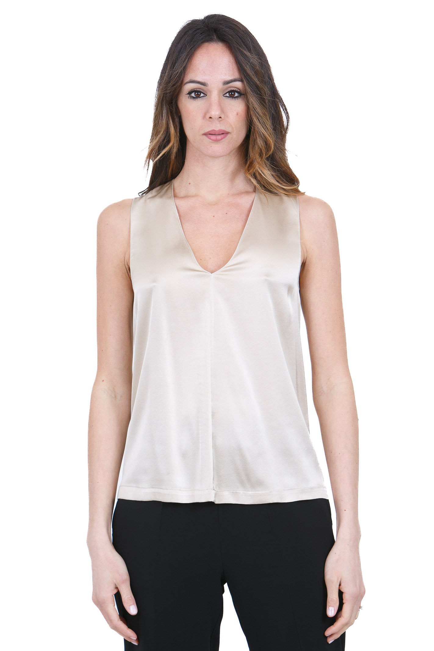 SCOLLO A V SENZA MANICHE RASO