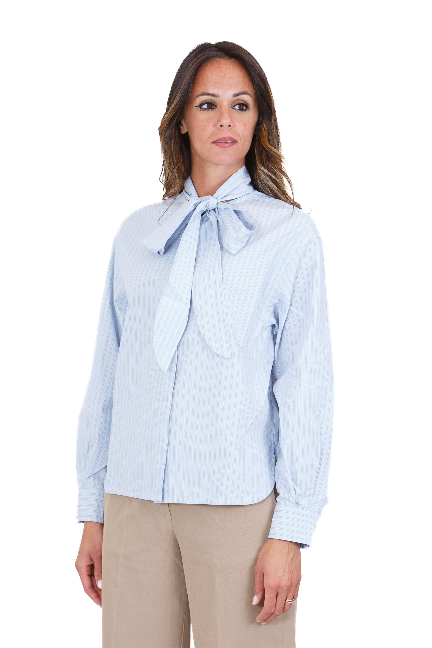 Christine camicia gessata con fiocco