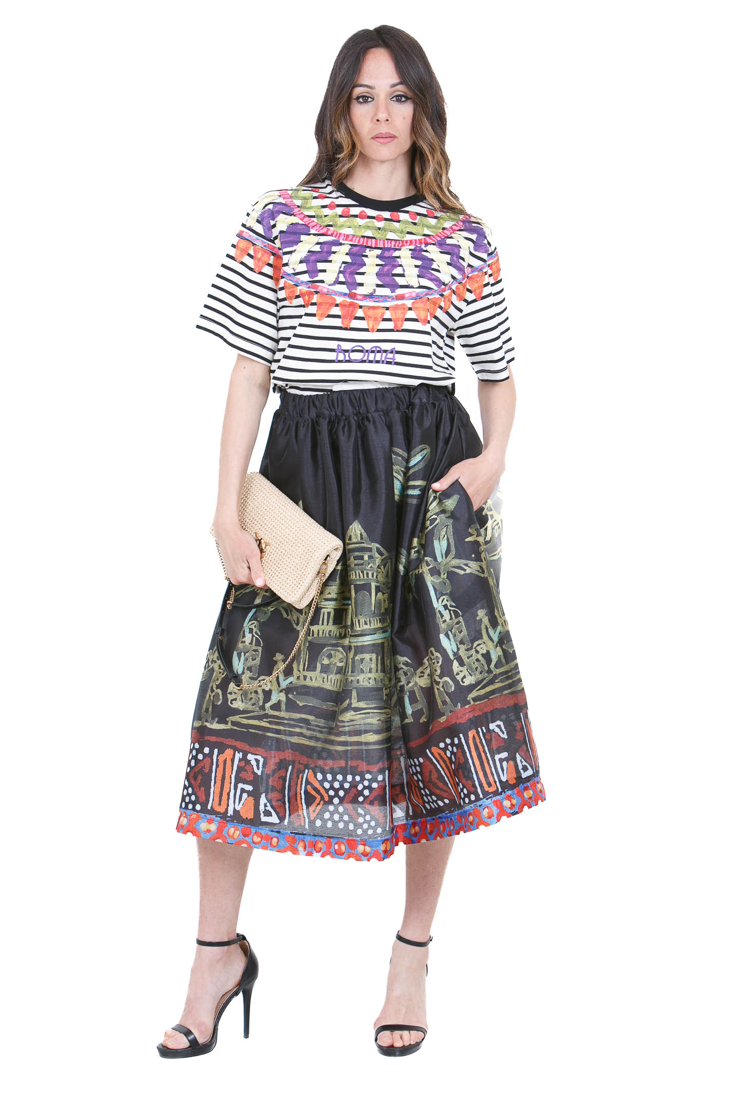 Gonna asimmetrica in satin
